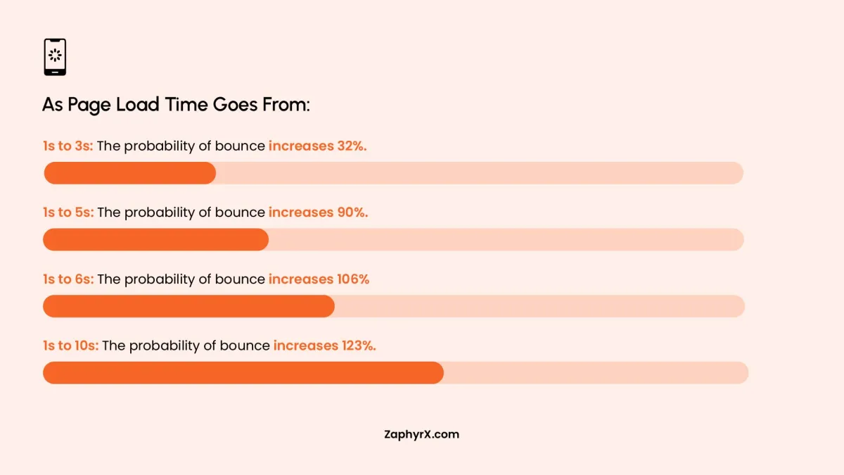 If load time increases from one second to 10 seconds, the probability of bounce increases by 123%. These are people who never even see what you have because they give up waiting.